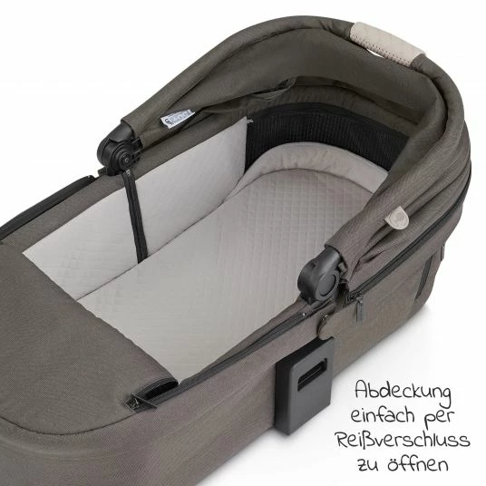 Die Babywanne ist mit einer hochwertigen, besonders weichen Matratze mit erhΓΆhtem Rand ausgestattet und bettet Dein Neugeborenes sehr bequem. GeschΓΌtzt wird es von der passenden Wannenabdeckung und einem groΓen Verdeck. Das Verdeck ist mit einem UV-Schutz 50+ ausgestattet. FΓΌr warme Tage ist jeweils ein BelΓΌftungsfenster am Verdeck und eines am Kopfende der Wanne integriert.