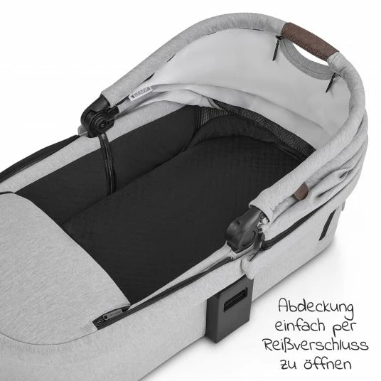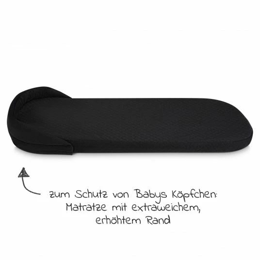 Die Babywanne ist mit einer besonders weichen, keilfΓΆrmigen Overnight Matratze mit erhΓΆhtem Rand ausgestattet und bettet Dein Neugeborenes sehr bequem. GeschΓΌtzt wird es von der passenden Wannenabdeckung und einem groΓen Verdeck. Das Verdeck ist mit einem UV-Schutz 50+ ausgestattet. FΓΌr warme Tage ist jeweils ein BelΓΌftungsfenster am Verdeck und eines am Kopfende der Wanne integriert.