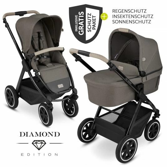 Der Kombi-Kinderwagen Samba – Diamond Edition – Herb von ABC Design ist ein sehr gut ausgestatteter Allrounder auf 4 Rädern. Er ist sehr leicht und bietet durch seine All-Terrain Bereifung mit Luftkammerrädern ein sehr breites Einsatzspektrum. Dank des extrem kleinen Faltmaßes bekommst Du ihn auch in einen kleinen Kofferraum. Im Vergleich zu den anderen Modellen von ABC-Design musst Du hierzu nicht mal den Sportwagen abnehmen. Dabei bietet er den gleichen Komfort wie die anderen Modelle.