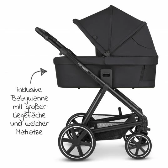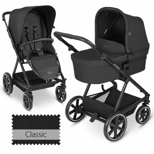 Mit dem Kombi-Kinderwagen Vicon 4 – inkl. Babywanne und Sportsitz – Classic Edition – Ink hat ABC Design einen preisgünstigen Einstieg in seine Produktwelt geschaffen. Im Vicon 4 ist Dein Kleines mit viel Komfort unterwegs. Dank seiner großen, wendigen Räder begleitet er Dich spielend durch die engen Gassen der Stadt, aber auch sicher über Wald- und Feldwege. Damit ist der Vicon 4 die ideale Wahl, wenn Du gerne flexibel unterwegs bist. Die geräumige Babywanne sorgt bereits ab der Geburt für Geborgenheit. Der funktionale Sportwagenaufsatz begleitet Euch bis ins Kleinkindalter.