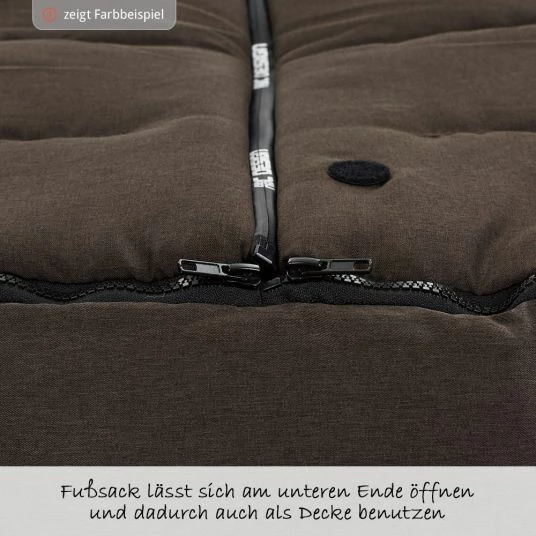 Der Reißverschluss ist abgedeckt, und schützt so zuverlässig vor Wind. Für mehr Sicherheit ist am Fußende ein Reflektionsstreifen angebracht. Die Reißverschlüsse kannst Du im Winter auch bequem mit Handschuhen bedienen. Den Fußsack kannst Du auch prima ohne den Kinderwagen verwenden. Hierzu kannst Du ihn komplett öffnen und zum Beispiel als Krabbeldecke oder Unterlage zum Wickeln nutzen.