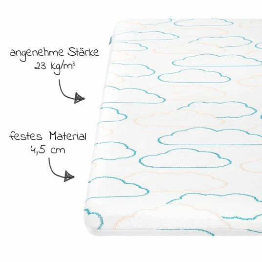 Der kuschelig weiche, gesteppte Bezug ist auΓerdem besonders sanft und so ideal fΓΌr die zarte Babyhaut geeignet. Mit praktischen MaΓen von 60 x 120 cm ist sie fΓΌr alle gΓ€ngigen Gitter- und Klappbettchen in dieser GrΓΆΓe einsetzbar. Damit sie fΓΌr unterwegs kaum Platz im Kofferraum einnimmt, lΓ€sst sie sich zusammenrollen und in der beiliegenden Transporttasche verstauen.