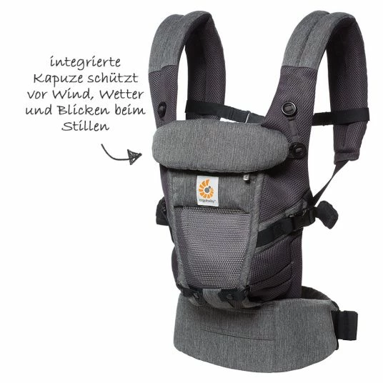 Bequem und gesund: In der Babytrage Adapt sitzt Dein Kleines immer in der gesunden Anhock-Spreizhaltung. Egal ob in der Bauch-, HΓΌft- oder RΓΌckentrageweise: die WirbelsΓ€ule ist leicht gerundet und die Beinchen angehockt. Der ergonomisch geformte Schalensitz besteht aus atmungsaktivem Material und macht es Deinem Kind fΓΌr lange Zeit superbequem. Das komplette RΓΌckenteil ist aus 3D Air Mesh gefertigt und sorgt so das ganz Jahr ΓΌber fΓΌr einen optimalen Temperaturausgleich bei Deinem Baby. Eine integrierte Kapuze schΓΌtzt nicht nur vor Wind und Wetter, sondern auch vor Blicken beim Stillen. Auch ein verdientes SchlΓ€fchen ist dank der Kopf- und NackenstΓΌtze problemlos mΓΆglich.