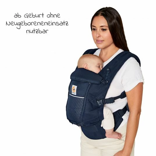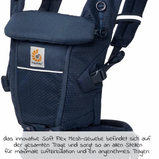 Dieย neue Babytrage Adapt Soft Flex Meshย โ Midnight Blueย von Ergobaby ist die atmungsaktivste Trage (รผber 90% dieser Babytrage besteht aus Soft Flex Mesh (einem Material, das zu 50% kรผhler hรคlt als das vergleichbarer Mesh-Babytragen), die alles kann. Dir bequemes Tragen und Deinem Schatz eine gesunde Haltung – in jeder Position. Das innovative Soft Flex Mesh-Material besteht aus zwei dรผnnen Schichten, die eine optimale Luftzirkulation gewรคhrleisten und dafรผr sorgen das es Dir und Deinem Baby nicht zu heiร wird. Dabei ist das Material รผberraschend weich und anschmiegsam. Du kannst Dein Kind anfangs auf dem Bauch und spรคter auf der Hรผfte oder dem Rรผcken tragen. Dabei nimmt Dein Kleines stets die empfohleneย Anhock-Spreiz-Haltungย ein. Die Trage ist auch ohne Neugeboreneneinsatz bereits ab der Geburt nutzbar und trรคgt Dein Kind bis zu einem Gewicht von 20,4 kg. Ob รndern der Trageposition oder Grรถรenanpassung auf Neugeborenes oder Kleinkind, bei der Adapt Soft Flex Mesh ist alles mit wenigen Handgriffen erledigt. Mit gut gepolsterten Schultergurten und Lordosestรผtze ist sie ein komfortabler Begleiter bei jedem Abenteuer.