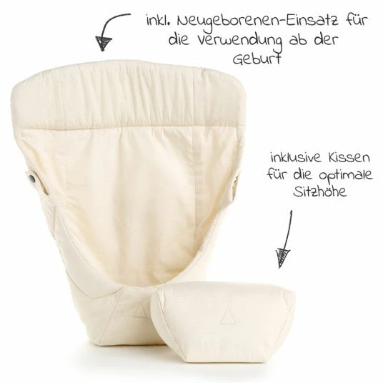 Der weiche Neugeborenen-Einsatz Easy Snug sorgt dafΓΌr, dass Dein Baby schon ab der Geburt bequem und in korrekter Haltung in der Ergobaby-Trage sitzt. Ein herausnehmbares Kissen sorgt fΓΌr die optimale SitzhΓΆhe. Und auch fΓΌr einen sicheren Halt im Kopf- und Nackenbereich ist gesorgt: Ein strukturiertes Nackenkissen, welches durch Schnallen angepasst werden kann, stΓΌtzt Babys Kopf und Nacken optimal ab und kann bei Bedarf heruntergeklappt werden. So sitzt Dein Kleines bequem und geschΓΌtzt, bis es sein KΓΆpfchen selber halten und ohne Neugeborenen-Einsatz getragen werden kann.