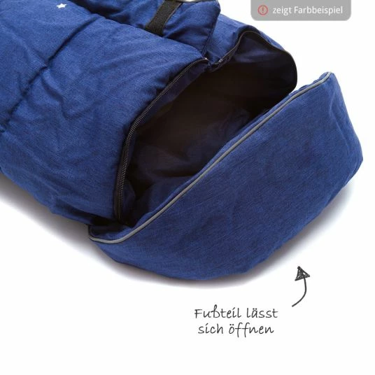 Softer and cuddlier foot bag with star pattern: The Foot bag Askja Big – Melange Black from Fillikid is ideally suited for strolling on baby buggies on cool days. The cute stars make Askja an absolute eye-catcher. But not only visually the footmuff is a highlight. The lining of Coral-Fleece makes it particularly fluffy. The outer fabric is made of densely woven polyester pongee with an additional water-repellent effect. Askja has a concealed zipper in the middle. Once it’s open, you can easily put your child in the pram.