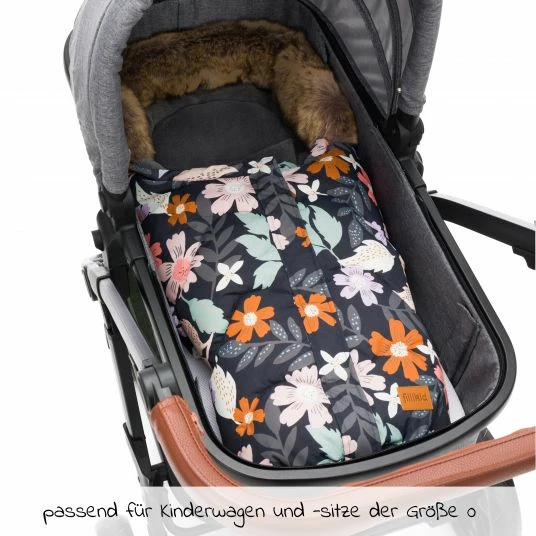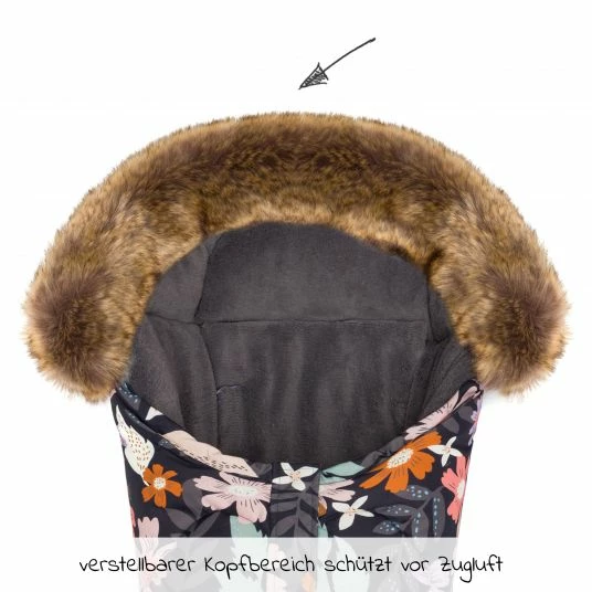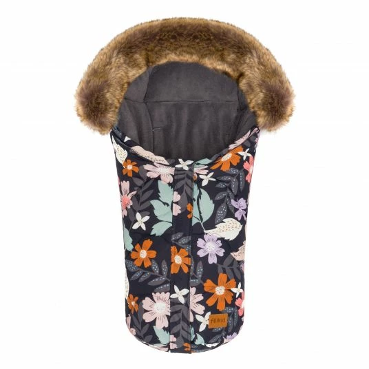Fillikid Fleece-Fußsack mit Fellkragen Lhotse für Babyschale und Babywanne – Blumen
