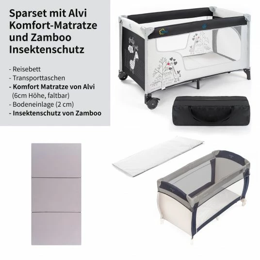 - 3in1-Sparset aus Reisebett, zusätzlicher Komfort-Matratze und passendem Insektennetz