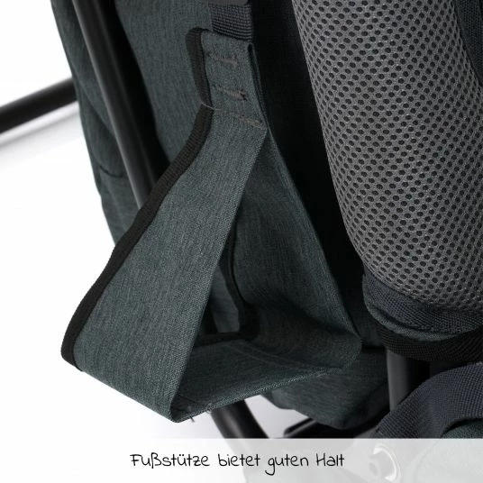 - Ausstattung: verstellbares Tragesystem, Sonne- und Regenschutz, Fußstützen, 5-Punkt-Gurt, Alu-Rahmen, Standfuß, verstellbares Rückensystem