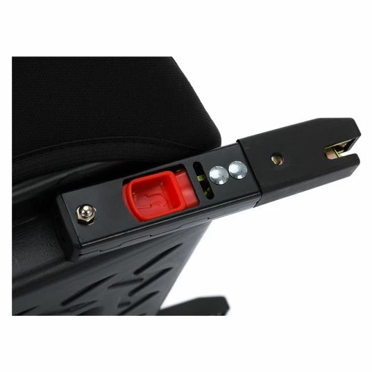 Ausklappbare Konnektoren ermöglichen eine Installation per Isofix oder mit dem Fahrzeuggurt. Die Sitzerhöhung hat an beiden Seiten breite Gurtführungen, durch welche der 3-Punkt-Gurt leicht und fehlersicher verläuft. Der Bezug ist abnehm- und bis 30 °C waschbar.