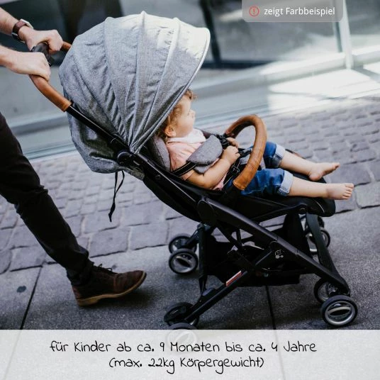 Was gibt es Schöneres als die Welt gemeinsam unter freiem Himmel zu entdecken? Der Gesslein Buggy & Reisebuggy Smiloo Cuby in Black-Cognac-Camel Meliert begleitet Dich und Dein Kind bei jedem Abenteuer, ob im Alltag oder auf Reisen. Du hast ihn in Sekundenschnelle aufgebaut und wieder zusammengeklappt. Aufgrund des praktischen Tragegriffs und dem leichtem Gewicht lässt sich der Buggy wie einen Koffer tragen und in so gut wie jedem Kofferraum verstauen. Nachhaltigkeit: Die Gesslein Buggys werden in Deutschland genäht und unter fairen Produktionsbedingungen hergestellt. Alle verwendeten Stoffe sind schadstoffgeprüft und entsprechen dem Oeko-Tex® Standard 100.