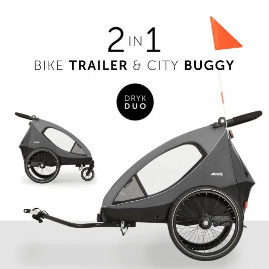 Cheap ✨ Hauck 2in1 Fahrradanhänger Dryk Duo für 2 Kinder (bis 44 kg) - Bike Trailer & City Buggy - Grey 🥰