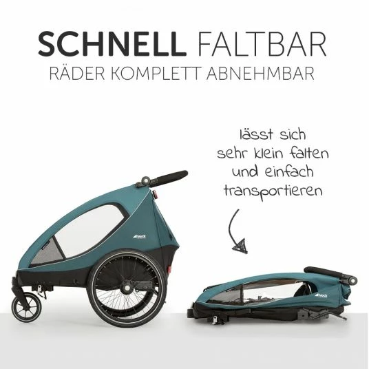 Promo 💯 Hauck 2in1 Fahrradanhänger Dryk Duo für 2 Kinder (bis 44 kg) - Bike Trailer & City Buggy - Petrol 😉