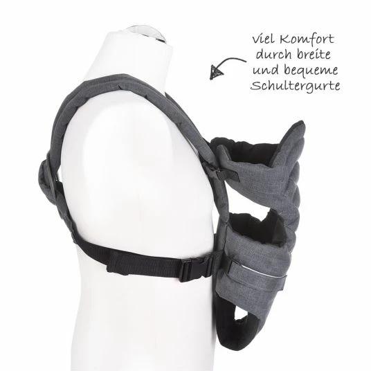 With the Baby stretcher 2-Way Carrier in trendy Melange Charcoal from Hauck you bring a baby stretcher home, which was developed under ergonomic aspects. As the name already says it can be worn in 2 different ways as soon as your little one can hold the head independently. The stretcher has a reinforced head and back section and offers many adjustment possibilities to make it comfortable for your little treasure.