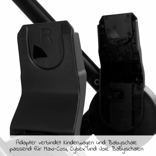 Mit Hilfe dieses Universal-Adapters kannst Du auf dem Walk N Care Kinderwagen diverse Babyschalen befestigen. Die Adapter steckst Du einfach zwischen das Kinderwagen-Gestell und den Autositz. Dadurch kannst Du deinen Maxi-Cosi jederzeit mit dem Walk N Care Kinderwagen-Gestell verwenden.