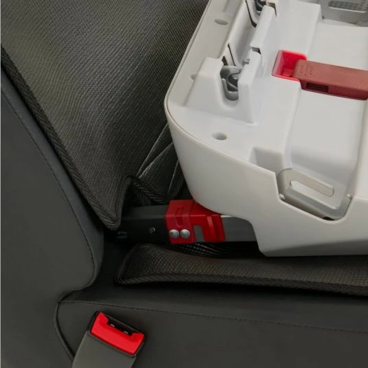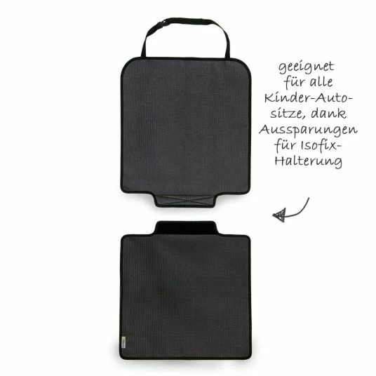 The seat mat is suitable as a base for child car seats and is particularly recommended in vehicles with leather or textile equipment. Due to the integrated recesses for the Isofix connectors, it can also be used for all seats and vehicles with Isofix device. The lower part of the pad can also be used individually – ideal for baby car seats.