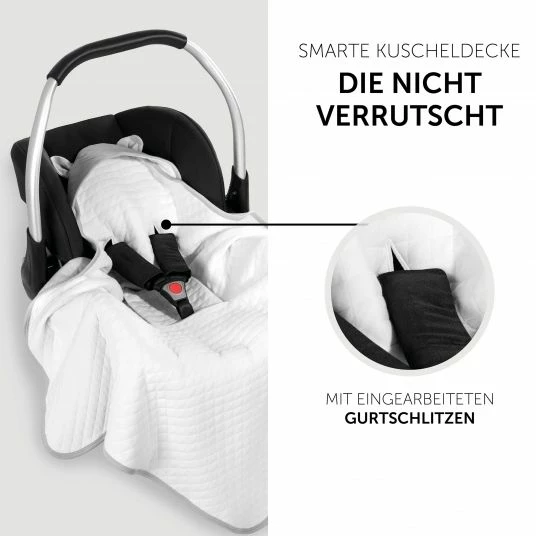 Dank einer extra groΓen GurtΓΆffnung ist die Decke fΓΌr alle 3- und 5- Punkt-Gurtsysteme passend. Das macht sie universell einsetzbar: So kannst Du sie fΓΌr die Babyschale, den Buggy, den Kinderwagen, eine Babywippe, als Wickelunterlage oder zum Pucken nutzen. Dabei ist sie ohne aufwΓ€ndiges DurchfΓ€deln sicher befestigt und kann nicht verrutschen, weggestrampelt werden oder gar verloren gehen.