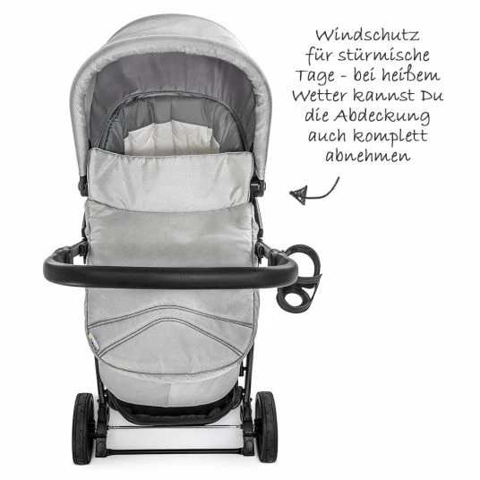 In der Babywanne liegt schon Dein Neugeborenes super bequem. Sie ist mit einer Matratze und einem Verdeck ausgestattet und so der perfekte Platz für kleine Schlafmütze. Sobald Dein Kind selbstständig sitzen kann, tauscht Du sie gegen den Sportwagenaufsatz aus – dieser trägt Kinder bis zu einem Gewicht von 25 kg. Das geht superleicht und ohne zusätzlichen Adapter. Der Sitz ist weich auch weich gepolstert und kann dank verstellbarer Rückenlehne und Fußstütze bis in die Liegeposition gebracht werden. So darf Dein Schatz auch hier in aller Ruhe schlafen. Gehalten wird er dabei von einem 5-Punkt-Gurt und einem Schutzbügel. Um blendende Sonnenstrahlen und kühlen Wind kümmert sich das große Verdeck.