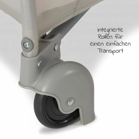 Alternativ lΓ€sst es sich aber auch schieben: Zwei FΓΌΓchen des Bettes sind mit Rollen ausgestattet. So lΓ€sst sich das Reisebett nicht nur aufgestellt hin- und herschieben, sondern zusammengeklappt auch wie ein Trolley ziehen. Dank praktischem KlappmaΓ von 76,5 x 21 x 22 cm nimmt das Bett nicht viel Platz weg und lΓ€sst sich gut im Auto verstauen. So kann die Reise gleich losgehen.