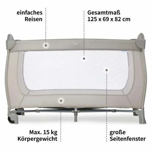 Hinweis: Das Bett enthΓ€lt eine dΓΌnne Faltmatratze. Das ist lediglich eine gepolsterte Bodeneinlage. Damit Dein Kleines gesund und bequem schlΓ€ft, empfehlen wir eine Reisebettmatratze mit einer HΓΆhe von 4-6 cm. Diese lΓ€sst sich recht platzsparend zusammenrollen oder -klappen. Eine Auswahl an Reisebettmatratzen findest Du bei uns im Shop.