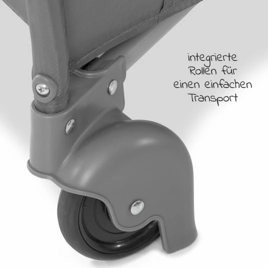 Alternativ lΓ€sst es sich aber auch schieben: Zwei FΓΌΓchen des Bettes sind mit Rollen ausgestattet. So lΓ€sst sich das Reisebett nicht nur aufgestellt hin- und herschieben, sondern zusammengeklappt auch wie ein Trolley ziehen. Dank praktischem KlappmaΓ von 76,5 x 21 x 22 cm nimmt das Bett nicht viel Platz weg und lΓ€sst sich gut im Auto verstauen. So kann die Reise gleich losgehen.