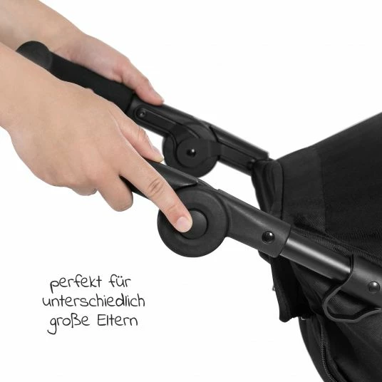 Der Schiebegriff lässt sich über 30 cm verstellen, um sich Mamas und Papas Größen optimal anpassen zu können. Unter dem Sitz des Hauck Runner 2 befindet sich ein großzügiger Korb. Hier können Einkäufe oder wichtiges Zubehör und Verpflegung für euer Abenteuer Platz finden.