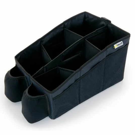 Up to 6 flexibly dividable compartments, 2 cup holders and mesh pockets keep all important things safe. The practical carrying handle means that the Organize Me is always with you – even outside the car.