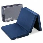 The majority of travel beds are equipped with a folding mattress that is two centimetres high. This serves stability more than comfort. The Sleeper mattress is six centimetres high, filled with soft foam, collapsible and much more comfortable. In a small format, the mattress fits into the carrying bag supplied and can be easily transported or stowed away to save space. Of course, the Sleeper is also suitable as a soft playing surface, the surface of which you can wipe with a damp cloth. To sleep, you can cover the mattress with a fitted sheet. You will find a selection in our shop.