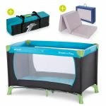 Price value, practical and Γ€extremely stable: The Travel bed Dreamβn Play in Waterblue weighs only 8.8 kg and can be assembled and disassembled in no time at all. In folding terms, it’s not bigger than a folded 2-person tent. This allows you to transport it space-savingly and comfortably in the supplied bag. Six stands and a robust tubular steel frame ensure stability. Whether on family vacation or in a grandchild’s room with grandma and grandpa, the Dreamβn Play is a firm and safe choice.