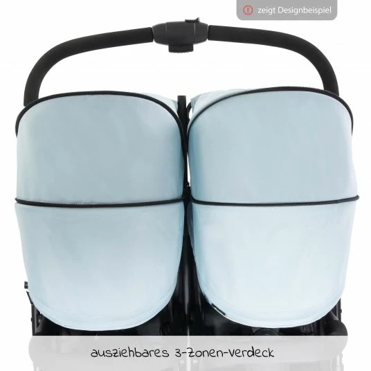Style Deinen Hauck Zwillingsbuggy Swift X Duo individuell und verleihe ihm einen tollen Farbklecks in Deiner Lieblingsfarbe: Die Sonnenverdecke Swift X Duo Deluxe Canopy von Hauck in coolem Iceblue verleihen Deinem Gefährt ein frisches Äußeres. Strahlend schick geht’s dann ab in die City zum Einkaufsbummel oder in den nächsten Urlaub.