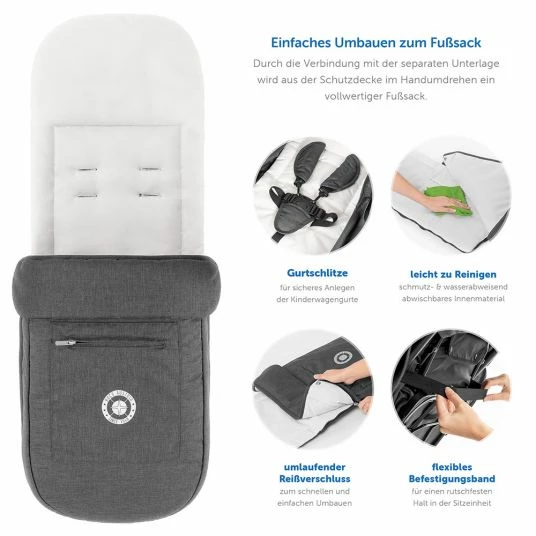 - Multifunktional โ die Schutzdecke kann zu einem vollwertigen Fuรsack umfunktioniert werden