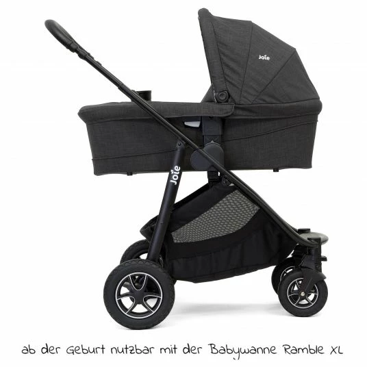 - Extras: inklusive Babywanne Ramble XL, Getränkehalter, Regenschutz, Adapter für die Babywanne Ramble XL und Babyschalen von Joie