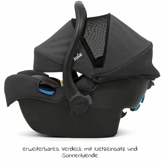 Am ergonomischen Tragebügel lässt sich die Babyschale anheben und einfach transportieren. Das abnehmbare Sonnenverdeck spendet Deinem Baby unterwegs angenehmen Schatten. Es ist besonders groß und mit einer extra Sonnenblende versehen, die Du bei Bedarf ausklappen kannst. Dank des praktischen Reißverschlusses lässt sich das Verdeck auch erweitern.