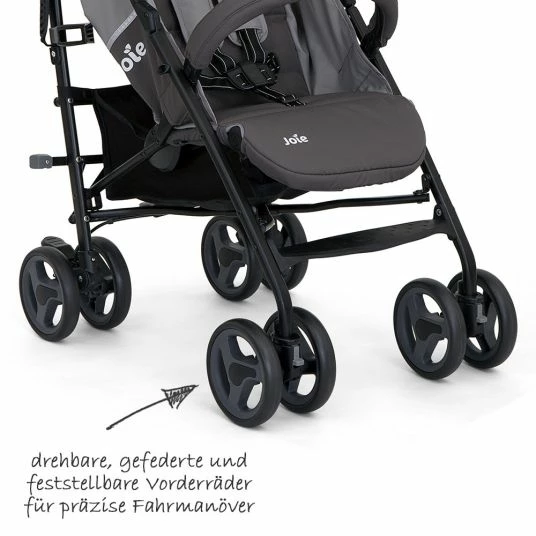 Lässt sich leicht im Kofferraum verstauen und bietet jede Menge Komfort: Der Buggy Nitro LX – Dark Pewter von Joie ist ein richtiges Multitalent. Auch als Reisebuggy geeignet. Mit seinen schwenkbaren Doppelrädern, Federung und der mehrfach verstellbaren Rückenlehne sorgt er bei Groß und Klein für Fahrvergnügen.