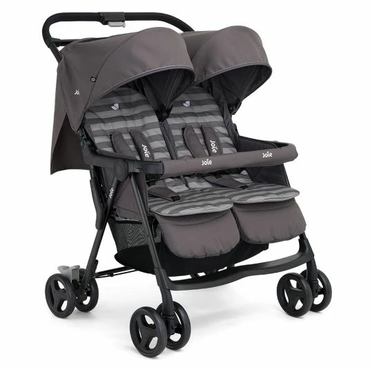 Bietet Zwillingen und Geschwistern mit geringem Altersabstand jede Menge Komfort: Der Geschwister- & Zwillingsbuggy AireTwin – Dark Pewter inkl. Regenschutz von Joie ist ein richtiges Multitalent. Mit seinen schwenkbaren Doppelrädern, der Federung und den getrennt voneinander verstellbaren Rückenlehnen sorgt er bei kleinen Leuten für großes Fahrvergnügen.