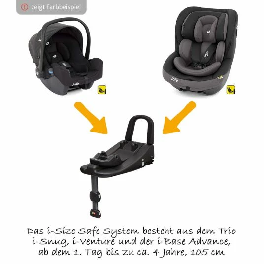 Der Kindersitz Reboarder i-Venture i-Size ist Teil des Joie i-Venture Systems: Das i-Size Safe System bestehend aus dem Trio i-Snug, i-Venture und der Basisstation i-Base Advance. Dieses 3-teilige Set begleitet kleine Passagiere ab dem ersten Tag bis zum Vorschulalter (ca. 4 Jahre, Körpergröße bis 105 cm). Die i-Snug ist auch mit den Basisstationen i-Base und i-Base LX kompatibel. Außerdem lässt sich die Babyschale mit ausgewählten Joie-Kinderwagen und denen anderer Hersteller verwenden (mit standardisierten Adaptern).