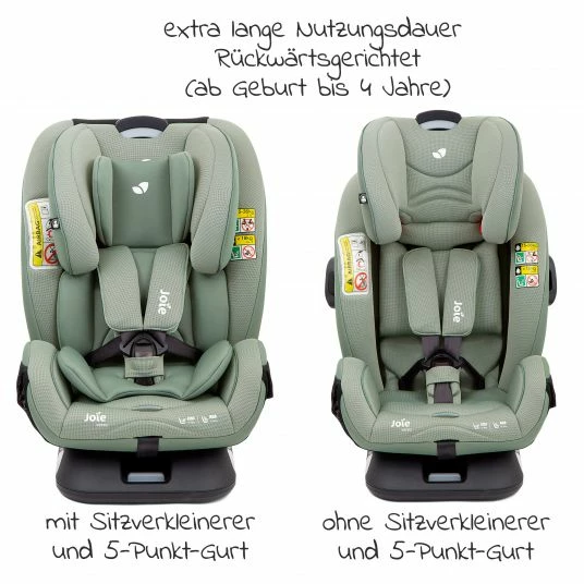- Langes rückwärtsgerichtetes Fahren ab der Geburt bis ca. 4 Jahre (18 kg) möglich