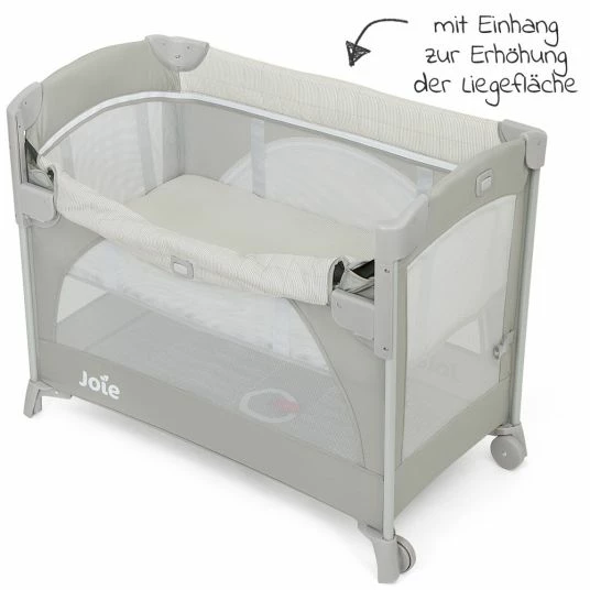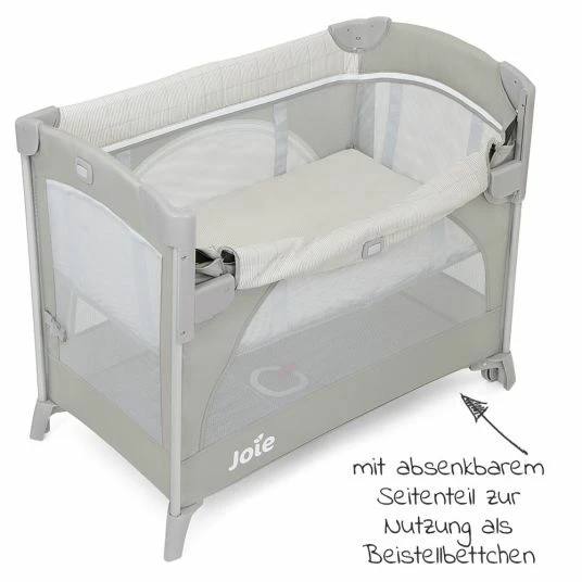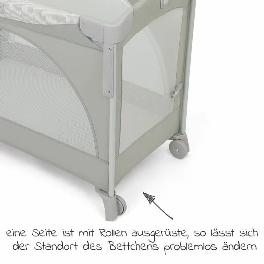 Mit dem mitgelieferten Bassinet-Einhang kannst Du die Liegefläche erhöhen. So liegen die Kleinsten nicht direkt über dem Boden und Du kannst Deinen Schatz besser sehen und ihn nachts leicht zum Stillen aus dem Bettchen heben. Superpraktisch: Weil sich eines der Seitenteile 2-fach absenken lässt, kannst Du das Reisebett auch als Beistellbettchen neben dem eigenen Bett einsetzen.