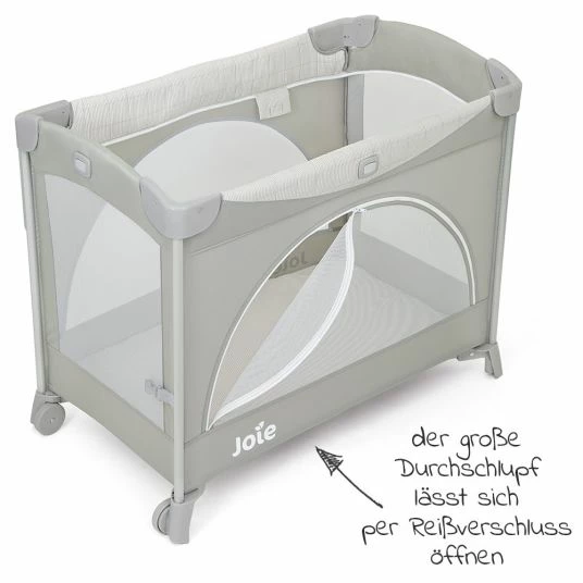 Das Reisebett Kubbie Sleep – Wheat von Joie macht nicht nur Babys Schlafstätte im Urlaub eine gute Figur. Du kannst es auch als praktisches Beistellbettchen oder als Laufstall nutzen. Möglich machen es ein abnehmbarer Einhang und ein absenkbares Seitenteil. Auch praktisch: Kubbie Sleep lässt sich ruckzuck zusammenklappen und auf diese Weise kompakt und einfach transportieren.