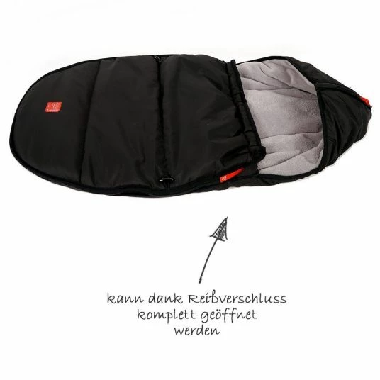 Für cuddly warmth in the baby seat or the baby bath the Fleece footmuff Hoody – Black by Kaiser. It opens completely from both sides. The upper part can be removed. This way you can easily put your baby in and out again. The zip zippers are covered with fabric tabs so they won’t stall your baby.