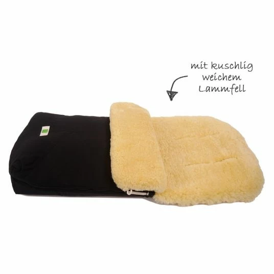 DerΒ Lammfell-FuΓsack Natura Organic Cotton β Schwarz by Kaiser is made from natural materials all around and is a real cuddly experience. Outside it consists of organic cotton from controlled organic cultivation. Inside it is lined with high-quality lambskin. Soft and thermoregulatory and equipped with the ability to absorb and evaporate moisture, lambskins are an ideal base for your little one.