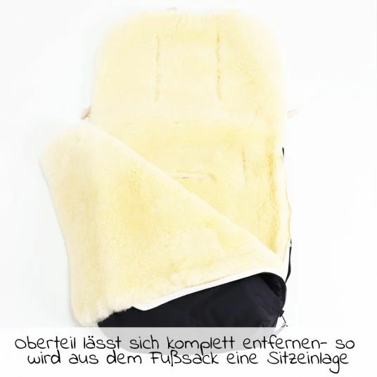 Der Fußsack hat einen praktischen 2-Wege Rundum-Reißverschluss. An sonnigen Tagen kannst Du das Oberteil abnehmen und das Unterteil als separate Sitzunterlage verwenden. Wird es kühler, lässt sich der Kopfbereich mittels Holz-Knebel über Babys Köpfchen schließen und bietet so optimalen Schutz vor Wind und Wetter. Das beschichtete Außenmaterial wirkt zusätzlich wasserabweisend. Im Fußbereich ist der Fußsack mit einem praktischen Schmutzschutz ausgestattet.