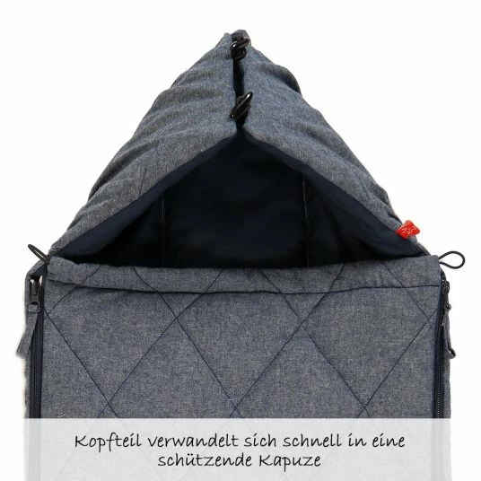 Babies and toddlers often react sensitively to temperature and weather and sometimes freeze at mild temperatures. With the All-Seasons Footmuff Nikko – Navy Melange from Kaiser your little one is cuddly and warmly bedded. The footmuff is made of skin-friendly cotton and fits on every pram thanks to sufficient belt slots. The front can be folded down so that your little one can think about his little clothes. It is attached to the underside with a zipper and is therefore completely removable. This makes dressing and undressing easier for you. You can also use the underside as a cuddly underlay. When it’s windy, use a gag to turn the headboard into a protective hood. That’s how your treasure is appreciated. Because there are also spills in the pram, easy cleaning is an advantage. This is why the footmuff can be washed quickly and easily in the machine.