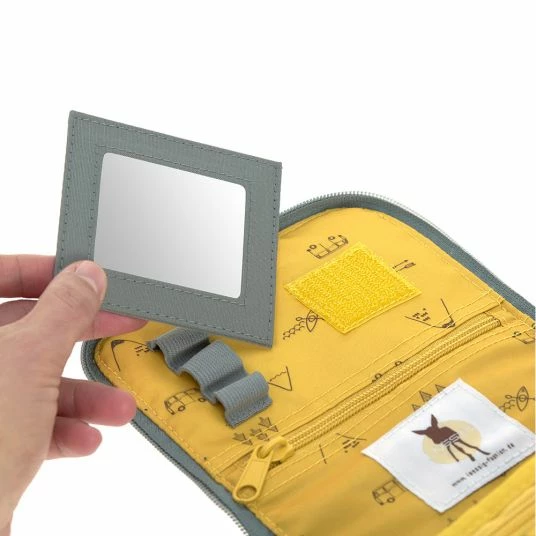 Besonders praktisch bei diesem Kulturbeutel sind das wasserabweisende Außenmaterial, der Haken zum Aufhängen und der im Set enthaltene abnehmbare Spiegel. Ein kleines Sichtfenster für das Namensschild schließt Verwechslungen aus.