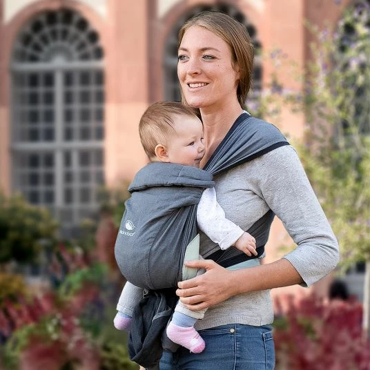 Für die Kleinsten ist die Bauchtrageweise ideal. So ist Dein Kind ganz nah bei Dir und Du hast es bestens im Blick. Ab einem Alter von etwa fünf Monaten eignet sich auch die Rückentrageweise.