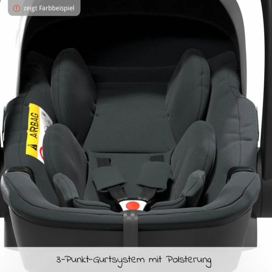- Befestigung im Auto:ย mit dem 3-Punkt-Fahrzeuggurt oder der separat erhรคltlichen Isofix-i-Base