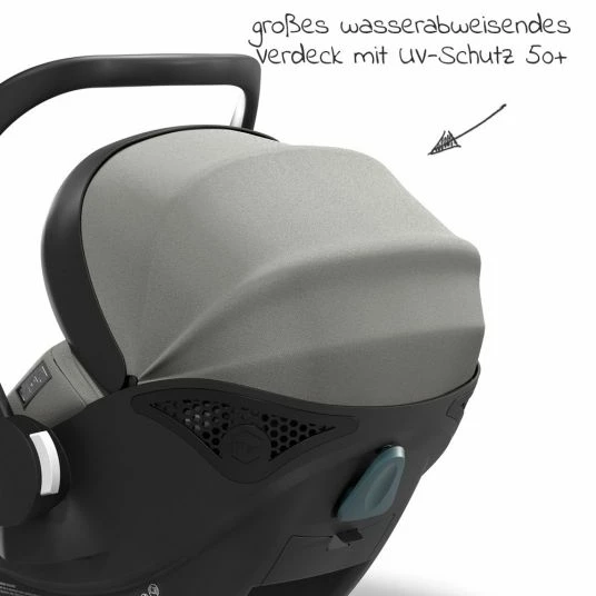 Die Babyschale Plus 1 besitzt ein einzigartiges Verschlusssystem fΓΌr den Kinderwagen: Den Tragegriff einfach nach hinten klappen (horizontal) –Β die Babyschale ist gesichert. Den Tragegriff in die Vertikale stellen – die Babyschale ist geΓΆffnet und vom Kinderwagen abnehmbar. Das abnehmbare, wasserabweisende Sonnenverdeck mit UV-Schutz 50+ spendet Deinem Baby unterwegs angenehmen Schatten.