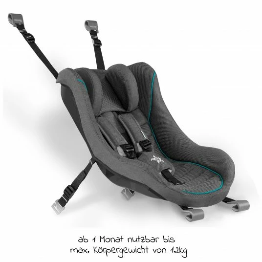 Dein Nachwuchs darf so schnell wie möglich mit auf die täglichen Reisen gehen? Kein Problem, denn die Babyschale für Queridoo Fahrradanhänger in Dunkelgrau bietet Deinem Kleinen optimalen Schutz während der Fahrradfahrt oder im Buggy-Modus. Sie eignet sich für alle Babys, die noch nicht sitzen können bis insgesamt 12 kg oder maximal dem 12. Lebensmonat. Die ergonomisch geformte Schale ermöglicht eine besonders rückenschonende Haltung während der Fahrt.