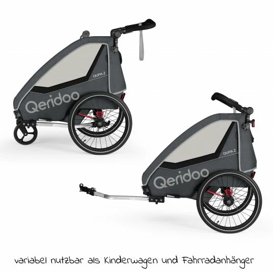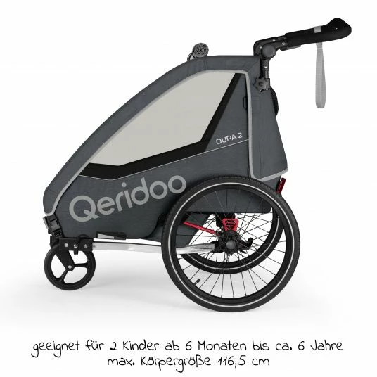 - Kinderfahrradanhänger & Buggy QUPA 2 für 2 Kinder mit Kupplung Grey