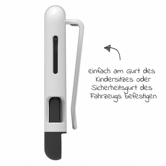 - lΓ€sst sich einfach an jedem Autokindersitz oder Sicherheitsgurt anbringen